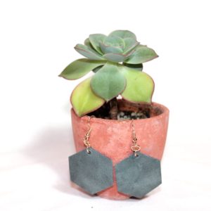 Be the first to review “Distressed Leather Hexagon Earrings” Cancel reply